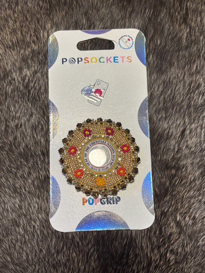 If you have ever gotten to hold a phone that has a pop socket, then you know that they are just the best invention ever for cell phones! So what does a native beader do, they bead it up. We will find a way to bead any and all accessories given time!
