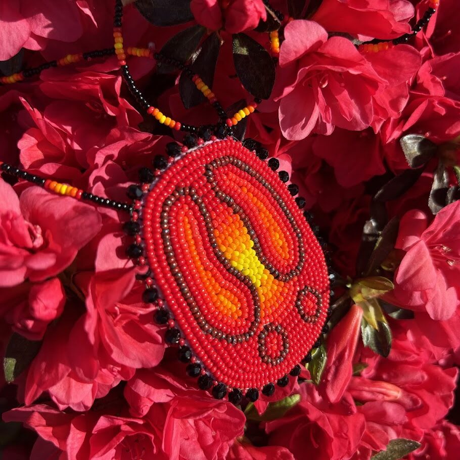 Deer Track medallion. The chain is simple and is approximatly 35″ long. The back is buckskin (forgot to take an image of that lol)